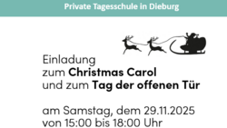 29.11.2025Am Samstag, dem 29. November 2025, findet von 15:00 - 18:00 Uhr unser alljährlicher Christmas Carol sowie der Tag der offenen Tür statt.